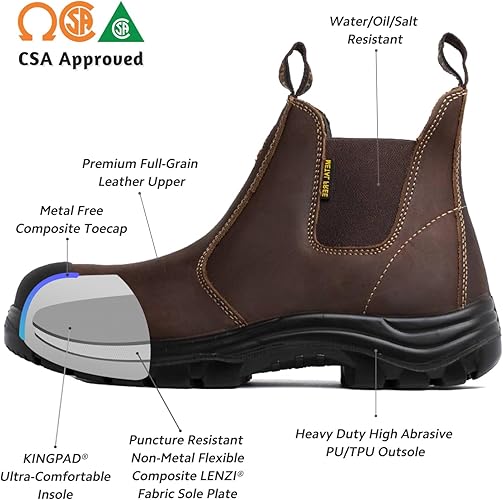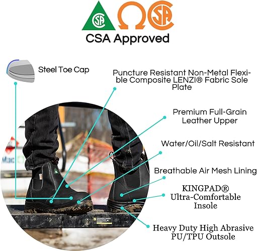- TOE CAP: CSA approved grade 1 composite toe cap ensures impact and compression to protect your feet against injuries and meets your work requirements in Canada. TPU scuff resistant bumper toe increasing wear protection.